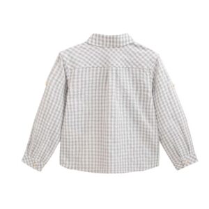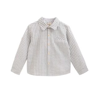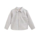 Camisa niño manga larga a cuadros gris con botones de madera en la parte delantera y en las mangas, esta camisa es de la prestigiosa marca https://dadati.es/